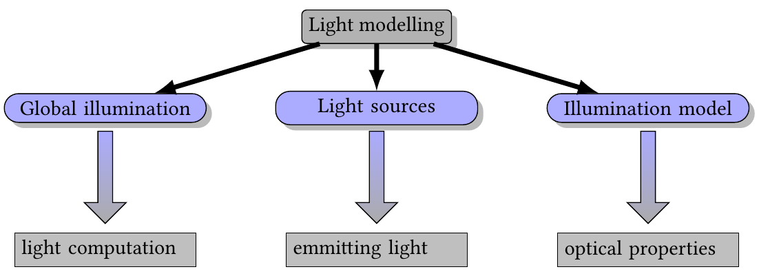 Light modelling, in general, involves three aspects: