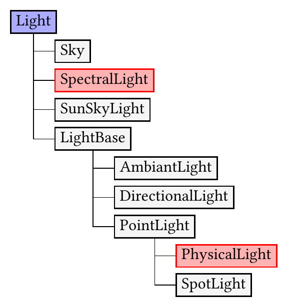 Regarding light sources, GroIMP provides the whole set of possible implementations. They all implementing the Light and LightBase interface what makes them handled equally and so easy to exchange.
