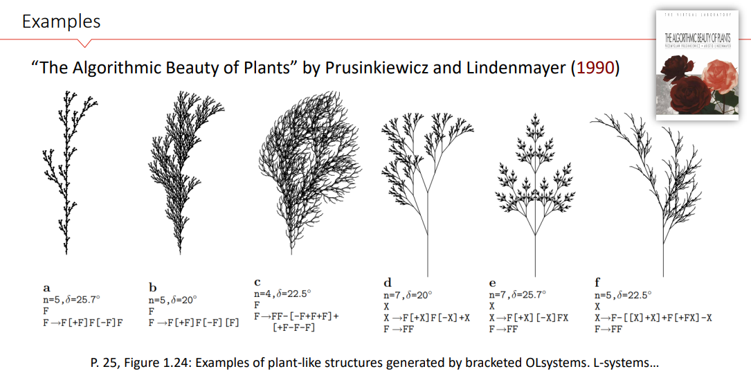 Implement the 'plant like structures' as described in the book “The Algorithmic Beauty of Plants” by Prusinkiewicz and Lindenmayer (1990) on page 25 in Figure 1.24.