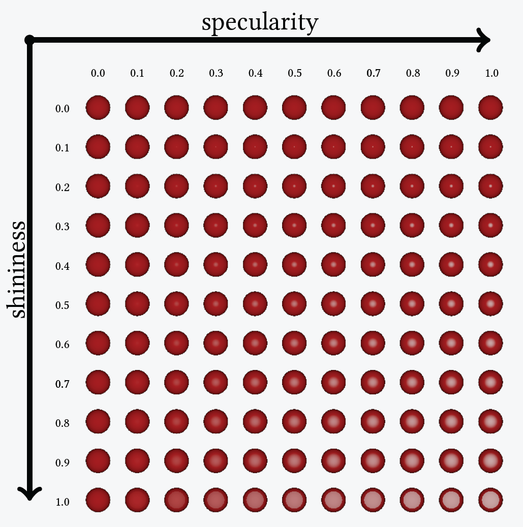 Below, an illustration of the effect of specular and shininess: