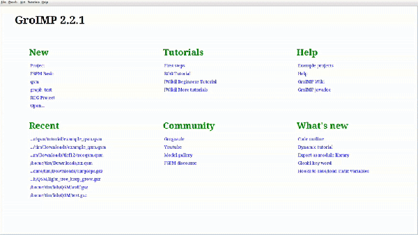 Loading a QSM file in GroIMP is possible in two ways either it can be opened as new project, which creates an empty workbench with only the qsm loaded, or by importing it to an existing project.