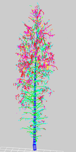 The first function we want to try is aiming at lateral branches that are clearly to long. We do this by using the QSM descriptor RTREND which describes the reverse trend (the number of apical successor on the same branch).